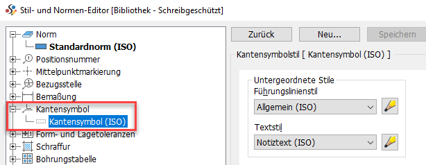Der Kantensymbolstil wird dem Stil- und Normen-Editor für Zeichnungen hinzugefügt.