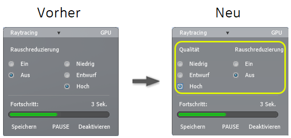 Das Dialogfeld Raytracing wurde verbessert, um den jeweiligen Zweck der angezeigten Optionen zu verdeutlichen.