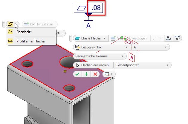 So arbeiten Sie mit Toleranzelement-Anmerkungen und dem Toleranzratgeber