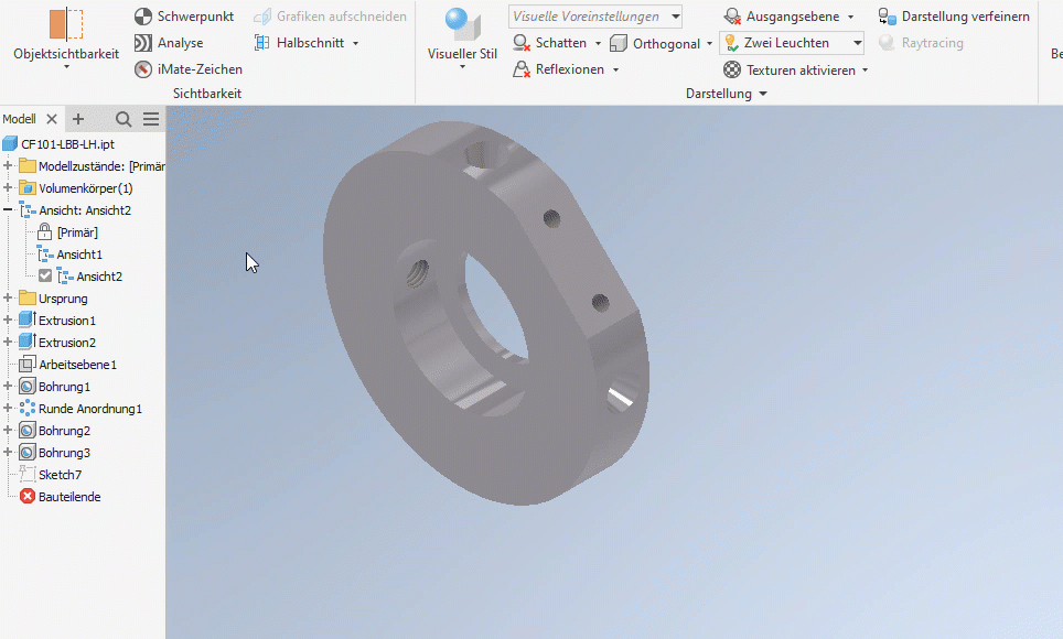 Sie haben jetzt die Möglichkeit, ein benutzerdefiniertes Bauteil in iLogic zu platzieren und zu definieren. Erstellen Sie ein benutzerdefiniertes Bauteil im Inhaltscenter, oder fügen Sie ein Inhaltscenter-Normbauteil als benutzerdefiniertes Bauteil ein, und erstellen Sie eine Regel zur Erfassung des aktuellen Status. Die Funktion AddCustomConterCenterPart wird erstellt. Wenn Sie das Bauteil bearbeiten und die Erfassung wiederholen, wird die iLogic-Regel entsprechend aktualisiert. Wenn Sie die Regel bearbeiten, wird das Bauteil ebenfalls aktualisiert.