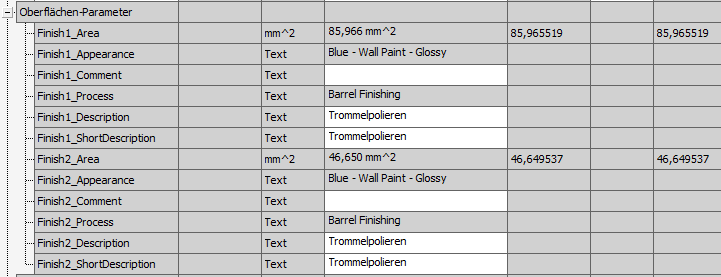 Jede Oberflächenelementeinstellung verfügt über einen Parameter mit einem entsprechenden eindeutigen Namen in der Kategorie Schlichtparameter im Dialogfeld Parameter. Alle Schlichtparameter können exportiert werden. Exportierte Parameter werden in iProperties angezeigt. Beachten Sie, dass Änderungen an iProperties sich nicht auf die Modelloberflächenelement-Parameter auswirken.