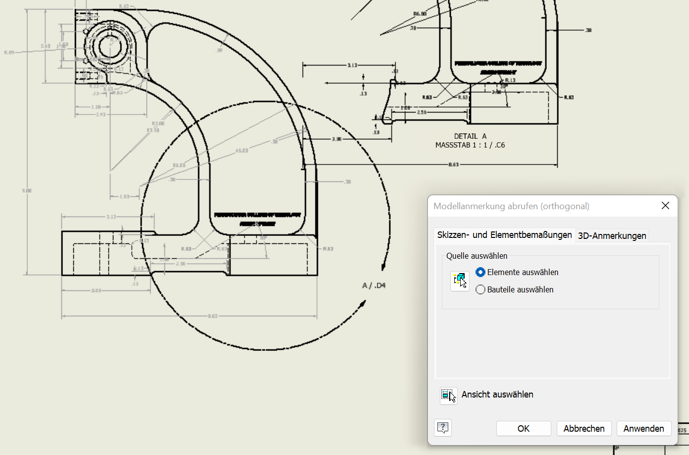 Wenn Sie bisher eine Ansicht platziert und anschließend gelöscht haben, wurde die Nummerierung der Details einfach fortgesetzt. Wenn Sie nun den letzten Schnitt, das letzte Detail oder die letzte Hilfsansicht (oder mehrere davon) löschen, wird die Beschriftung der neuen Ansicht (z.B. A, B...) angepasst, sodass der Index ab der letzten vorhandenen Ansichtsbezeichnung in der Zeichnung fortgesetzt wird.