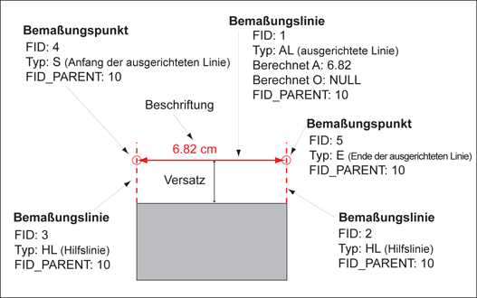 Datenmodell: Komponenten einer ausgerichteten Bemaßung