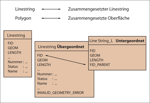 Sie können eine Polylinien- oder Polygonobjektklasse in eine zusammengesetzte Elementklasse konvertieren. Die vorhandene Polylinien- oder Polygon-Objektklasse ist die übergeordnete Objektklasse, und es wird eine neue untergeordnete Objektklasse erstellt. Alle Attribute der vorhandenen übergeordneten Klasse werden beibehalten.