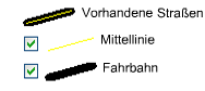 Sie können den Stil von Straßen bestimmen, indem Sie eine dicke, durchgehende schwarze Linie mit einer dünnen, gestrichelten gelben Linie kombinieren.