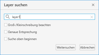 Anmerkung: Wenn keine Option ausgewählt ist, wird bei der Suche vorgabemäßig nach teilweise aufeinander folgenden Zeichen in Layernamen gesucht, und Groß-/Kleinschreibung wird nicht berücksichtigt.