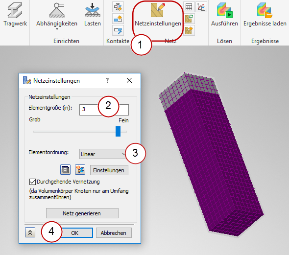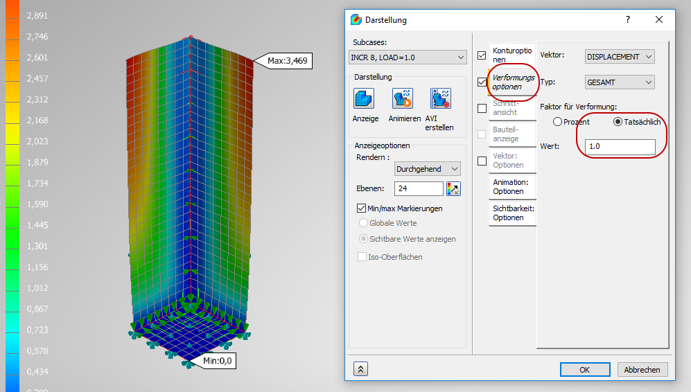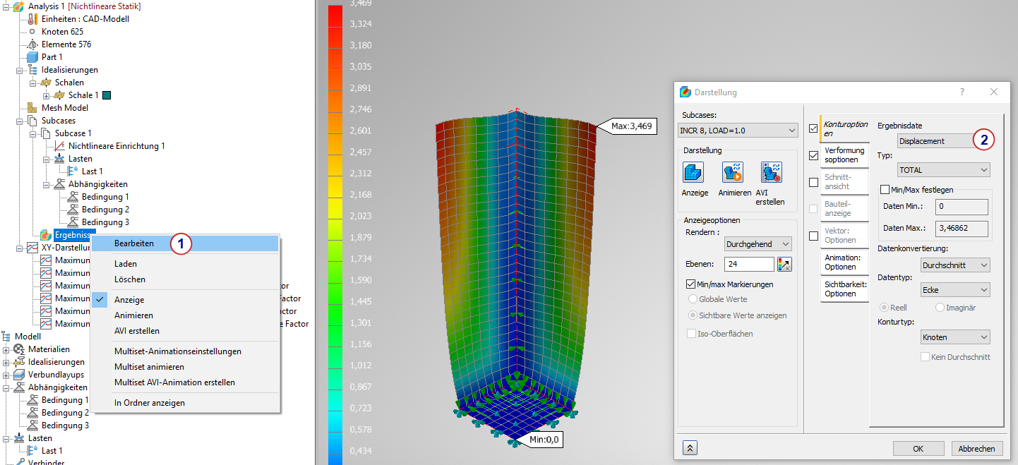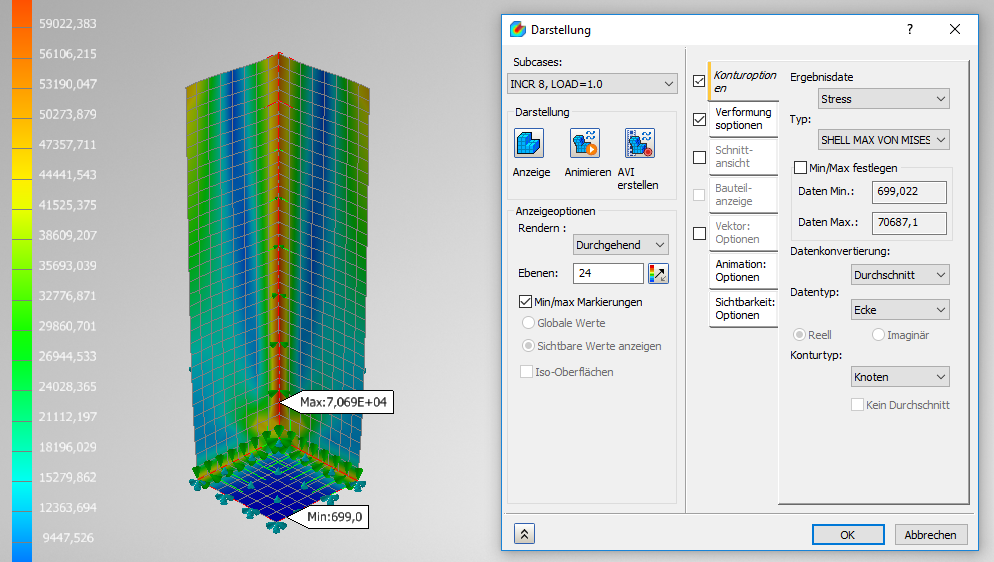 Wir führen diese Analyse als linear statische und auch als nichtlineare Analyse durch und vergleichen die Ergebnisse.
