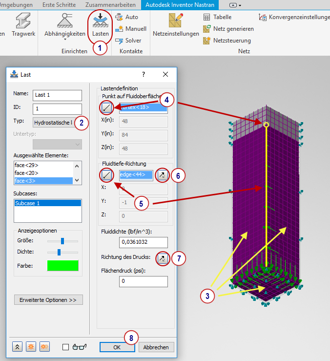 - Wählen Sie als Typ hydrostatische Last.
