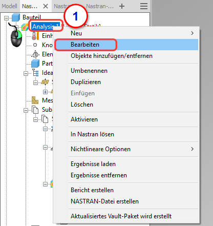 - Klicken Sie mit der rechten Maustaste in der Analyse-Strukturansicht auf Analyse 1 und wählen Sie Bearbeiten.