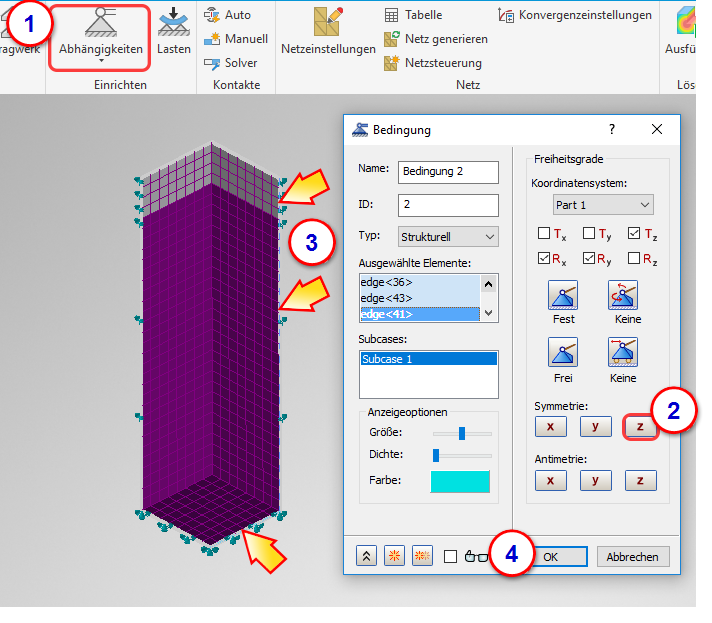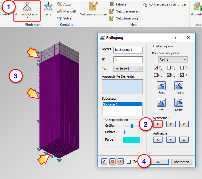 In diesem Schritt weisen wir den Symmetriekanten in der YZ-Ebene eine X-Symmetrie zu.