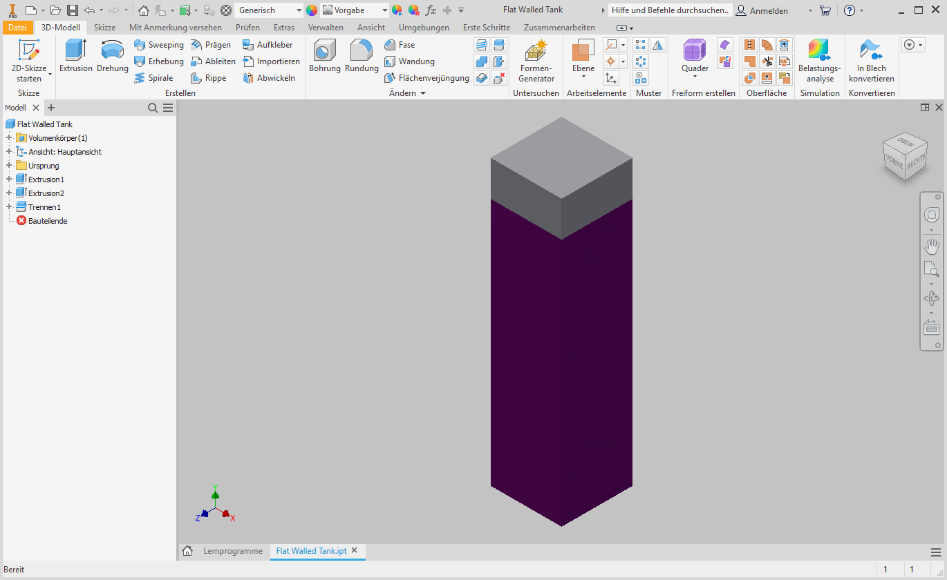 Flat Walled Tank.ipt aus dem Unterordner