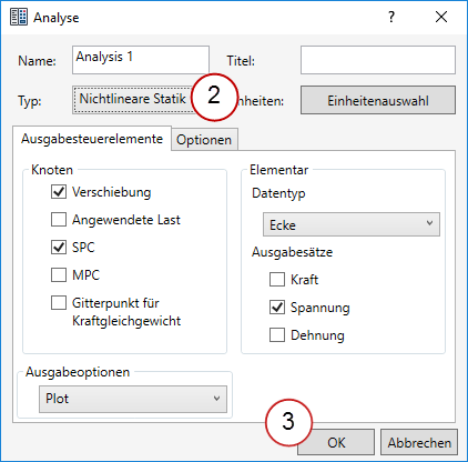 9. Ändern Sie den Analysetyp in Nichtlinear statisch und wiederholen Sie den Vorgang