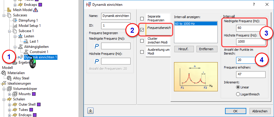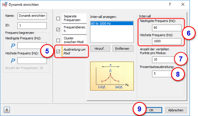 2. Richten Sie die modalen Frequenzantwortanalyse ein
