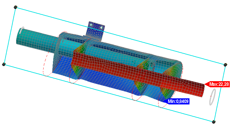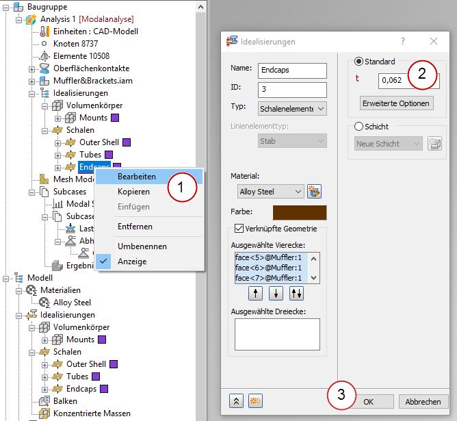 In dieser Übung haben wir die Geometrie geändert, um die fragwürdigen Modi aus den Spitzenenergiebereichen der Kurve hinaus zu versetzen. Dies wurde durch Verdicken der Endkappen und Befestigungsteile erreicht.