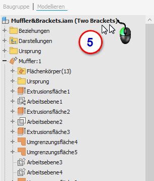 Starten Sie Autodesk Inventor und öffnen Sie die Datei Muffler&Brackets.iam aus dem Unterordner Teil 23 – Schalldämpfer – Modale Vermeidung im Ordner Übungen.