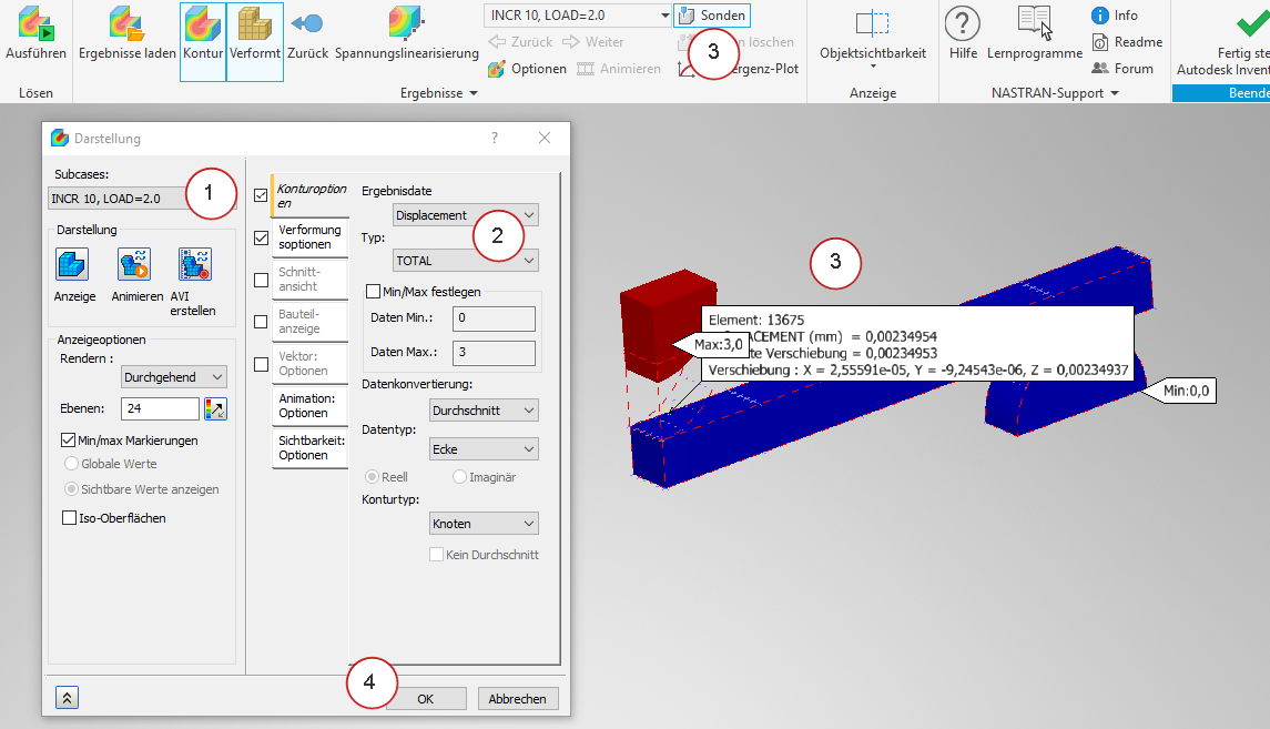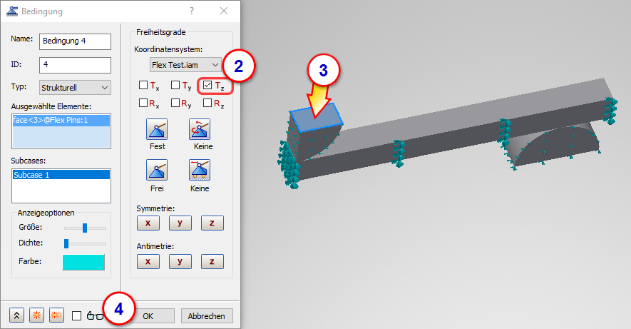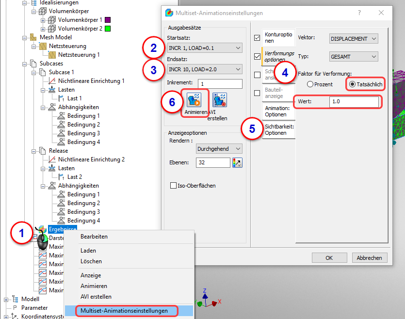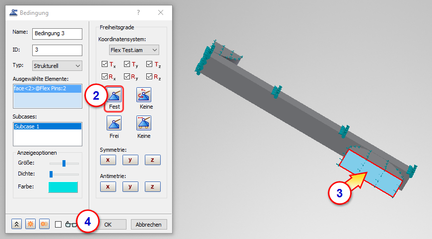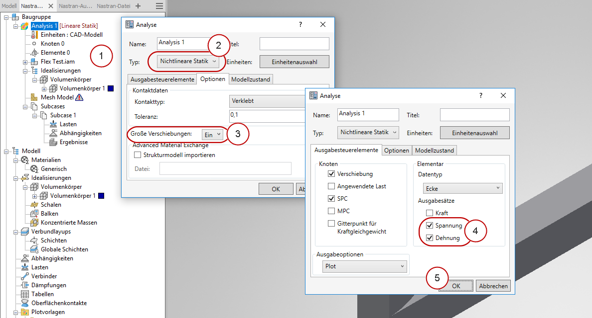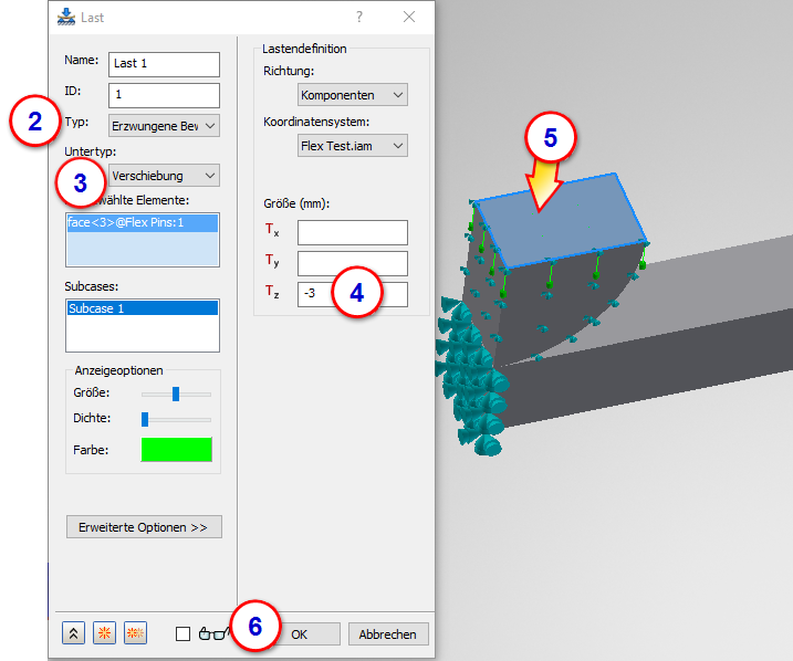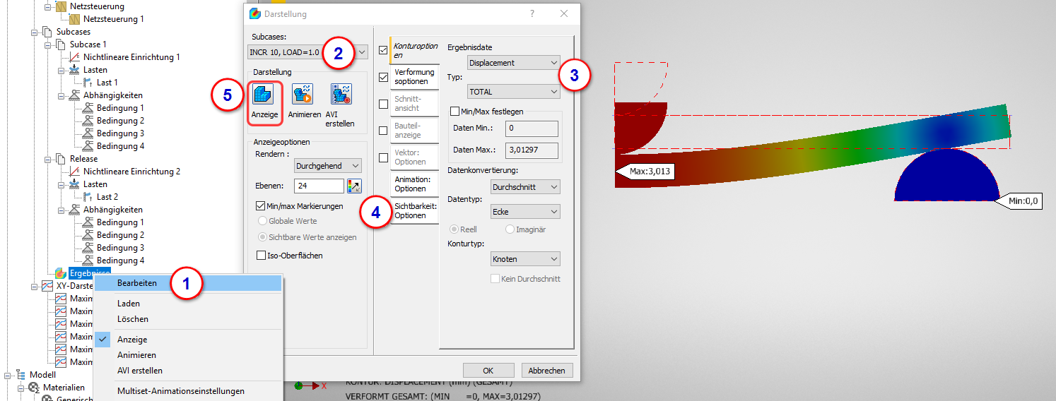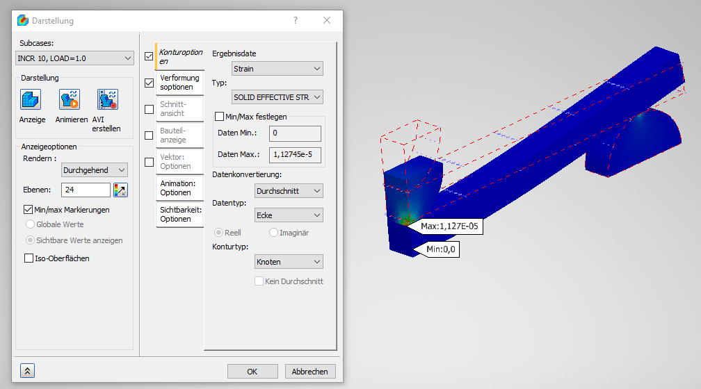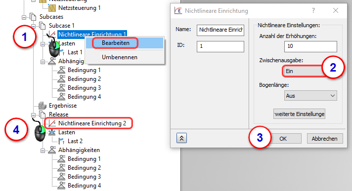 4. Wiederholen Sie diese Schritte für den Subcase Nichtlineare Einrichtung 2.