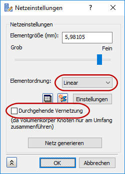 6. Geben Sie als Elementgröße für die Flächendaten2 ein.