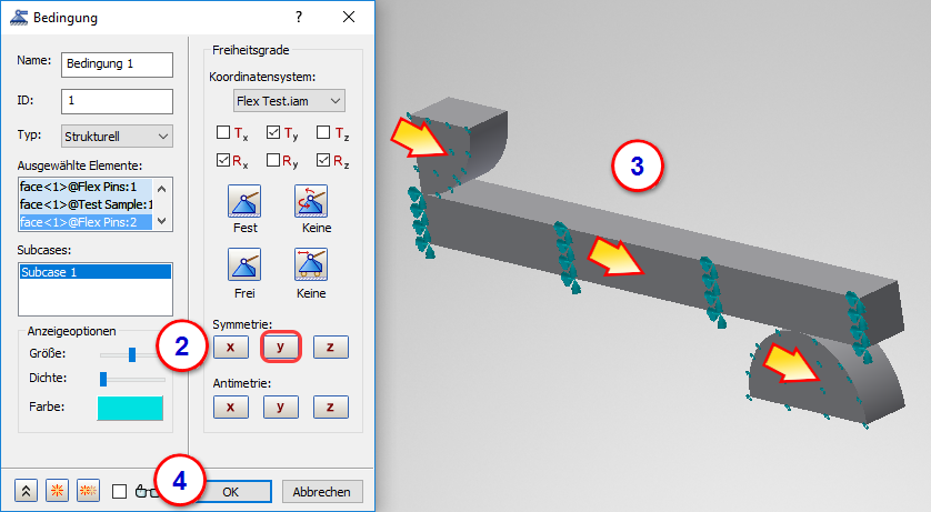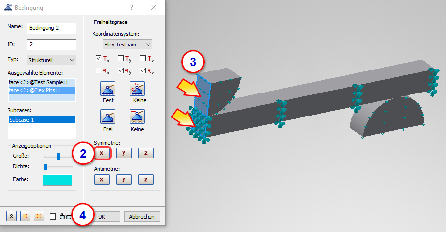 Zur Verkürzung der Simulationszeit verwenden wir die Viertelsymmetrie des Modells.