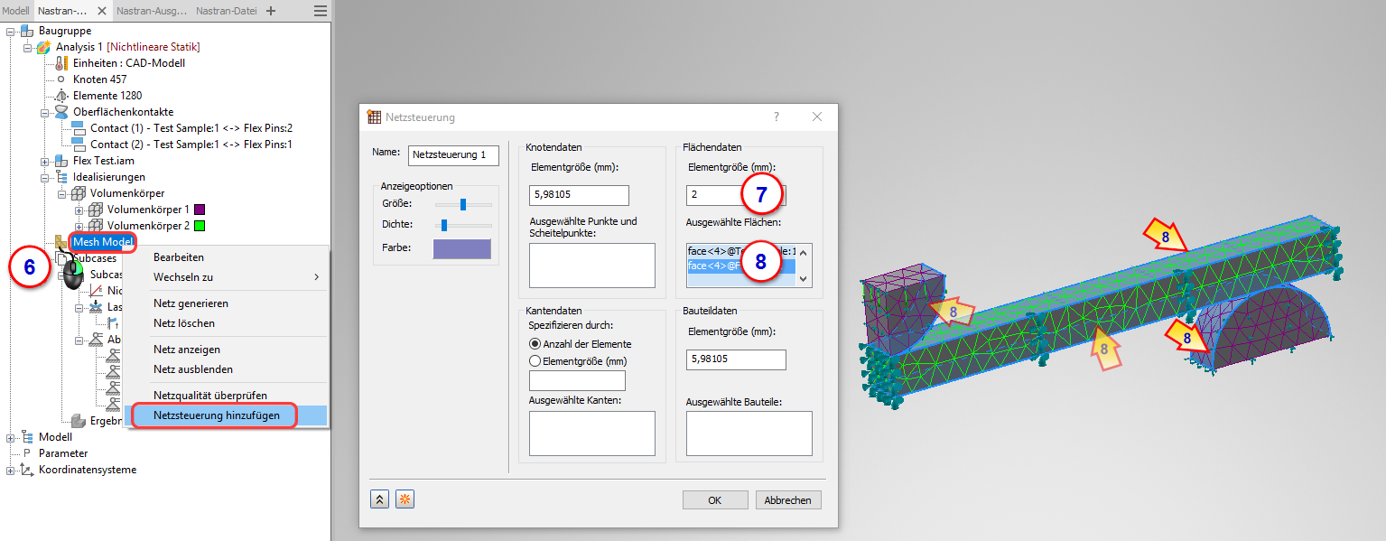 5. Klicken Sie aus der Strukturansicht der Analyse heraus mit der rechten Maustaste auf Netzmodell > Netzsteuerung hinzufügen.