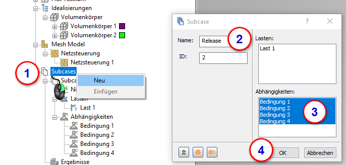 1. Klicken Sie mit der rechten Maustaste auf Subcases > Neu.