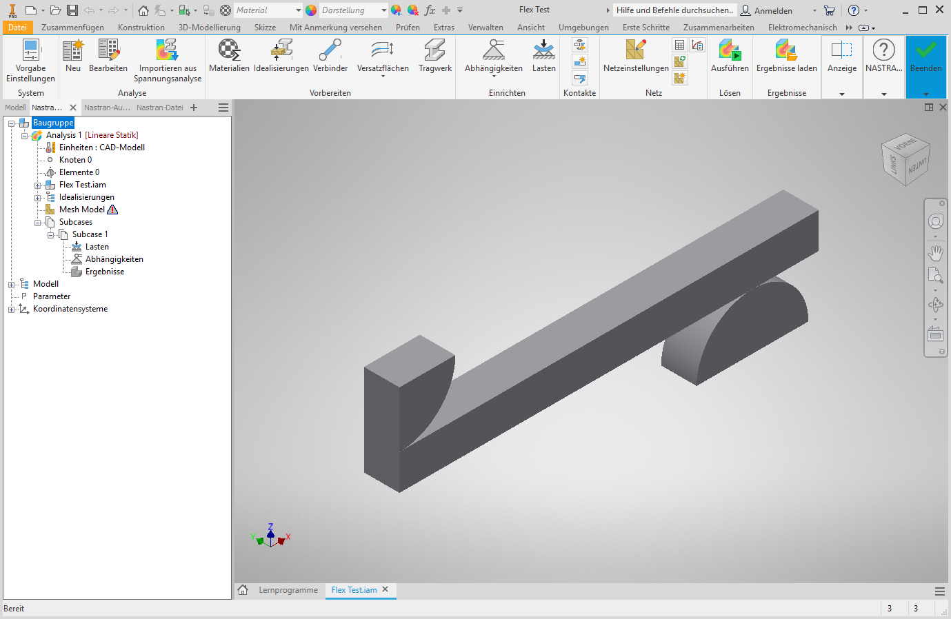 1. Öffnen Sie das Modell und starten Sie die Autodesk Inventor Nastran-Umgebung