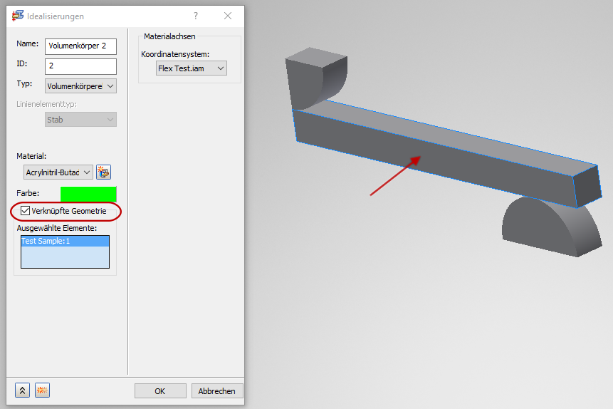 4. Aktivieren Sie im Dialogfeld Idealisierungen das Kontrollkästchen verknüpfte Geometrie.