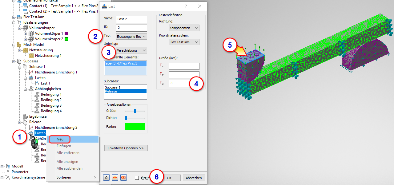 1. Klicken Sie im Subcase Release mit der rechten Maustaste auf Lasten > Neu.