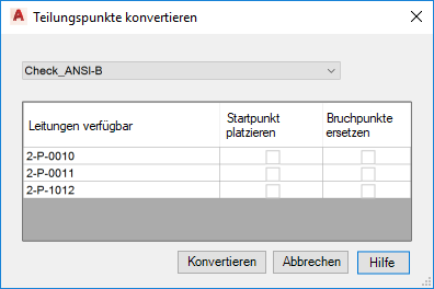 - Klicken Sie auf die Option Teilungspunkte konvertieren. Das Dialogfeld Teilungspunkte konvertieren wird angezeigt.