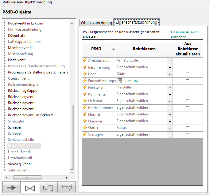 Ordnet P&ID-Klasseneigenschaften den Rohrklassen-Objekteigenschaften zu.