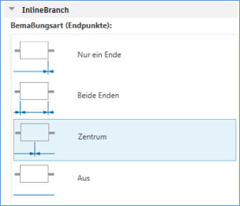 - Bemaßungsendpunkte. Gibt das Messen von nur einem Ende, von beiden Enden oder vom Mittelpunkt einer Komponente an. Sie können auch angeben, dass keine Bemaßung erstellt werden soll.