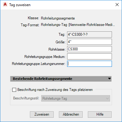- Geben Sie im Dialogfeld Tag zuweisen in das Feld Zielobjekt.Nummer die Leitungsnummer ein (z. B. 105).