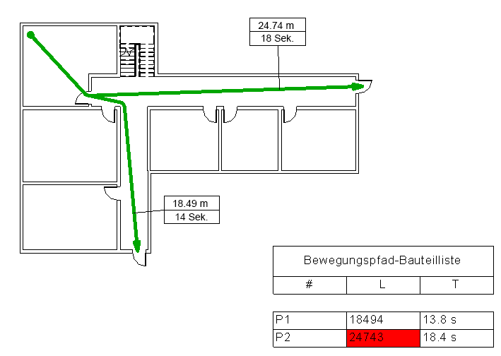 Verwenden Sie die Routen-Analyse zum Berechnen der Entfernung und des Zeitaufwands für die Bewegung von einem Punkt zu einem anderen Punkt im Modell.