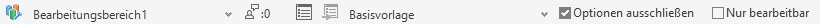 Die Statusleiste zeigt immer den aktiven Bearbeitungsbereich und bietet einfachen Zugriff auf das Dialogfeld Bearbeitungsbereiche.
