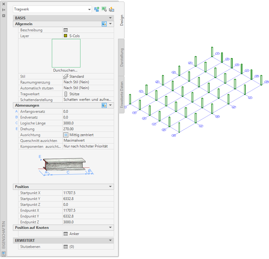 Stützen, Träger und Streben sind die Tragwerksteile in einem Gebäude. Sie können in AutoCAD Architecture erstellt und in Revit als Referenz importiert werden.