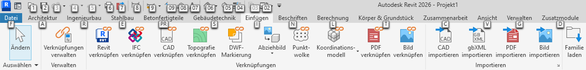 Um Tastaturkurzbefehle anzuzeigen, drücken Sie die ALT-Taste.