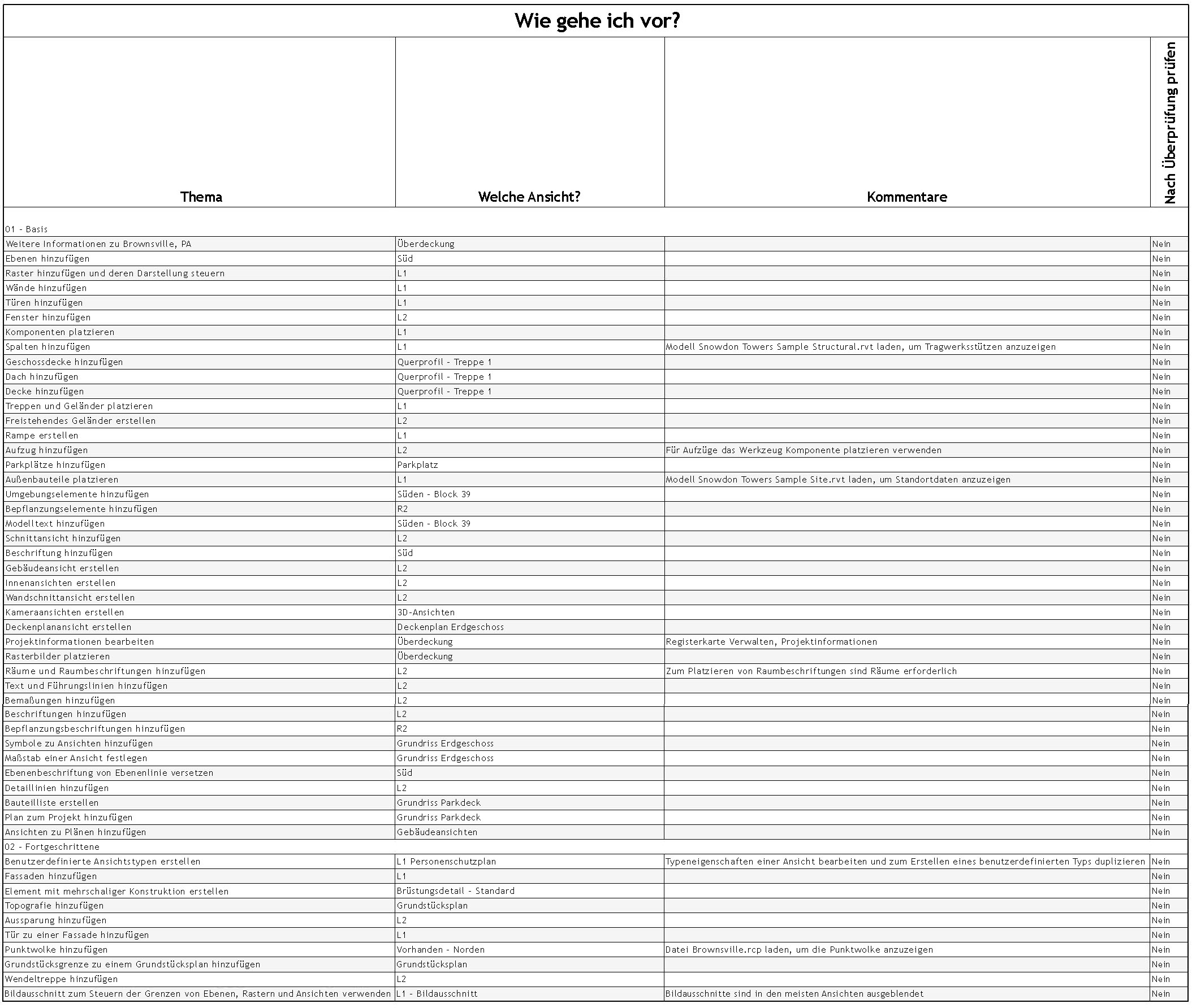 - Viele Arbeitsansichten wurden im Projekt belassen. Diese werden intern vom Projektteam verwendet und nicht an externe Empfänger in Plänen oder in anderen formalen Darstellungen weitergegeben.