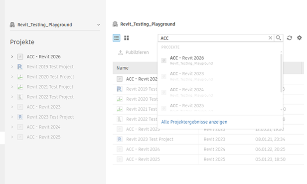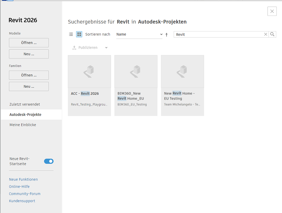 Autodesk-Projekte in allen Revit-Softwareversionen auf der neuen Revit-Startseite anzeigen.