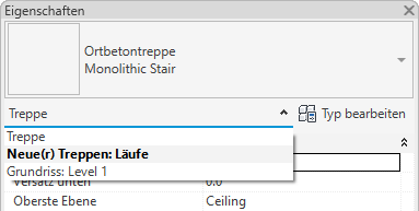 - Wählen Sie in der Typenwahl den Treppentyp, den Sie erstellen möchten. Sie können den Typ später ändern, wenn erforderlich.