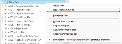 Um eine Plansammlung zu erstellen, klicken Sie unter Projektbrowser