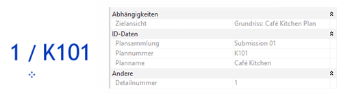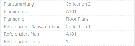 Die Parameter Plansammlung und Referenz-Plansammlung stehen in entsprechenden Familienkategorien (Ansichtstiteln, Ansichtsreferenzen, Detailausschnittsbeschriftungen, Ansichtsbeschriftungen, Schnittlinienbeschriftungen, Planköpfen) zur Verfügung und können in Beschriftungen verwendet werden.
