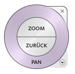 Über das 2D-Navigationsrad können Sie 2D-Navigationswerkzeuge nutzen. Verwenden Sie dieses Werkzeug auch, wenn an Ihrer Maus kein Bildlaufrad vorhanden ist.