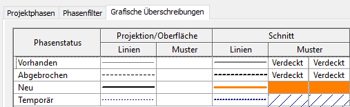 Grafische Überschreibungen für Phasen