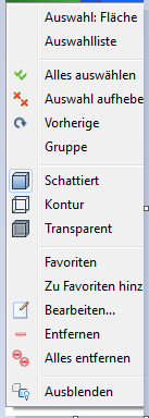 Zum schnellen Zugriff auf häufig verwendete Befehle für die aktuelle Aufgabe klicken Sie mit der rechten Maustaste in das Grafikfenster. Für weitere Befehle zur Steuerung der Darstellung klicken Sie mit der rechten Maustaste auf das Modell.