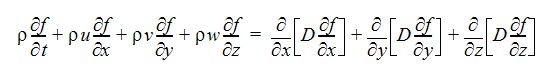 Um die Feuchtigkeit im Fluid nachzuverfolgen, wird eine zusätzliche partielle Differentialgleichung für eine skalare Größe gelöst, welche den Massenanteil der Feuchtigkeit (entweder in der flüssigen oder in der dampfförmigen Phase) repräsentiert:
