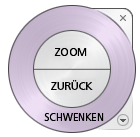 Wenn Sie den Cursor über die Befehle auf einem Rad bewegen, wird eine QuickInfo unter dem Rad angezeigt, in der die Funktion des Segments oder der Schaltfläche beschrieben wird.