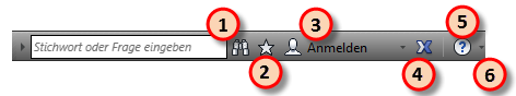 Das InfoCenter befindet sich in der oberen rechten Ecke der Benutzeroberfläche. Es ist Ihre Verbindung zu Informationen und Neuigkeiten von Autodesk®.