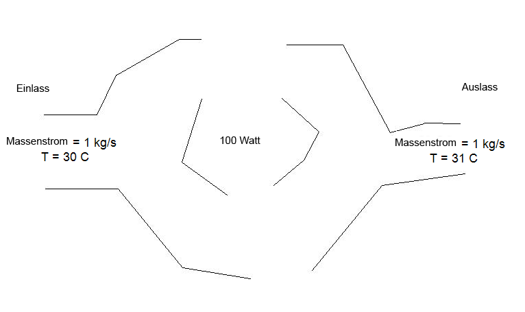 Wärmeübertragung aufgrund von Quellen im Festkörper = Wärmeübertragung von außerhalb zu Festkörper + Wärmeübertragung von Fluid zu Festkörper + (geringe Menge an Strahlung)