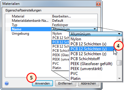 In diesem Schritt weisen Sie den beiden Leiterplatten ein Leiterplattenmaterial zu.