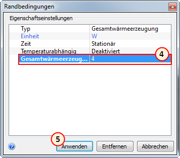 4. Geben Sie in die Zeile Gesamtwärmeerzeugung den Wert 4 ein.