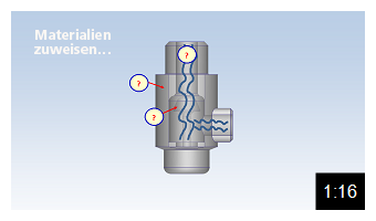 | Flusssteuerung Simulieren Sie die Strömung von Wasser durch ein Hydrauliksteuerventil. Das Ventil ist halb geöffnet. Ziel ist daher Druckverlust und Verteilung des Flusses. |